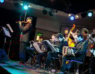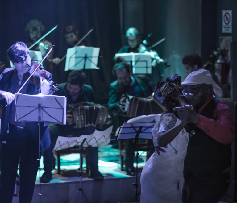 Este repertorio también se presenta en formaciones más reducidas, partiendo del cuarteto (violín, bandoneón, piano y contrabajo), explorando la intimidad del tango de cámara.